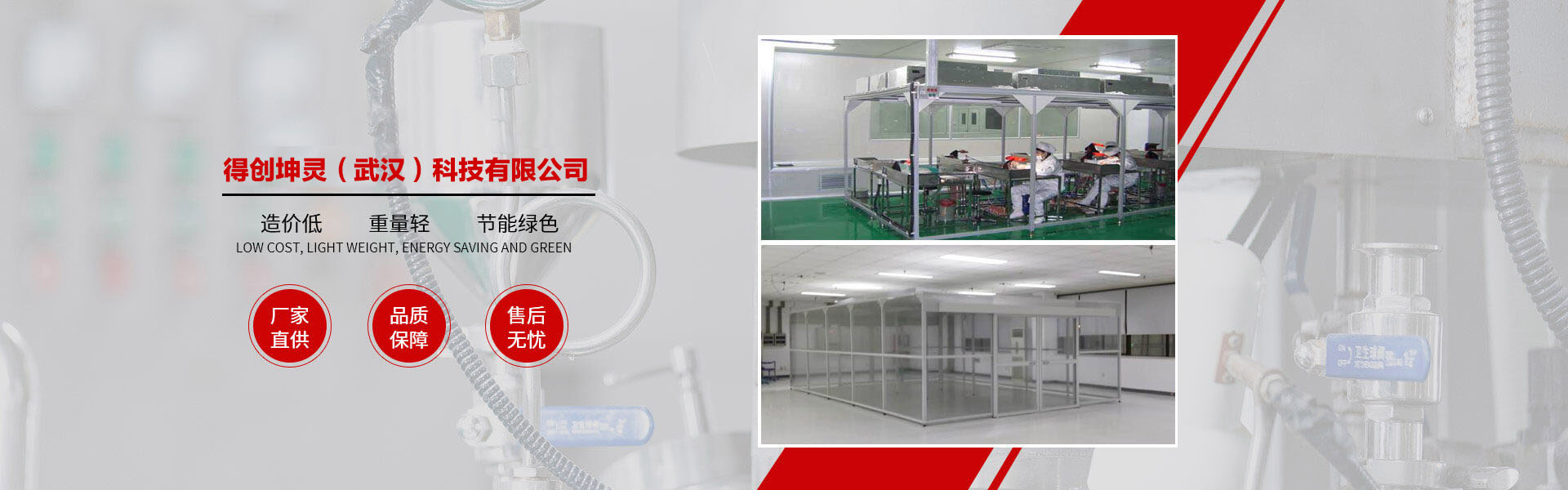 得創(chuàng)坤靈成立于2010年6月,專業(yè)從事食品無菌車間、GMP車間、電子無塵車間、食品醫(yī)藥包裝車間、醫(yī)療器械車間、潔凈棚、土建工程簡易房、無菌實驗室、組合式空調機組等項目的設計、裝修、施工、調試、安裝為一體的凈化工程公司,承接十萬級、萬級、千級、到百級的凈化車間、無塵車間、無塵室、潔凈廠房、潔凈室工程的改造與建設。 作為中國潔凈室系統工程及設備制造高品質、專業(yè)化的代表,得創(chuàng)秉承“追求完美品質、超越客戶期望”的理念,通過對客戶生產環(huán)境的深入研究及多年的工程實踐,積累了豐富的潔凈室空調凈化系統及節(jié)能優(yōu)化設計、項目管理及施工經驗,綜合實力始終處于業(yè)界領先地位。 公司資質齊全,包括裝飾裝修工程二級、機電安裝二級、電子與智能化二級、消防工程二級、環(huán)保工程二級;擁有多名高級工程師及暖通設計工程師,有著醫(yī)藥凈化工程設計、食品無菌食設計、電子無塵車間設計經驗,長年與設計院有著良好的合作和溝通關系。公司多年專業(yè)從事凈化工程安裝業(yè)務,擁有數次在全國各地有著豐富安裝經驗的安裝工程隊伍,在大型管道及彩板安裝方面有著豐富的安裝經驗和先進的現場管理體系。 公司產品廣泛服務于電子、光電、微電子、光纖光纜、精密機械、生物制藥、食品飲料、航空航天等眾多領域。我們始終以技術為中心、以創(chuàng)新為動力、以服務為己任。以一流的產品質量,良好的售后服務,參與到激烈的市場競爭中來,贏得客戶的支持與信賴。 隨著公司的持續(xù)發(fā)展、隊伍的日益壯大,公司將一如既往地堅持"以客戶為中心"的理念,在激烈的市場競爭中迎頭奮進,以"創(chuàng)一流品牌、建一流企業(yè)"的品牌拓展戰(zhàn)略,面對機遇與挑戰(zhàn),開創(chuàng)一片嶄新的天地! 品質成就夢想、秉承口碑相傳、得創(chuàng)凈化……